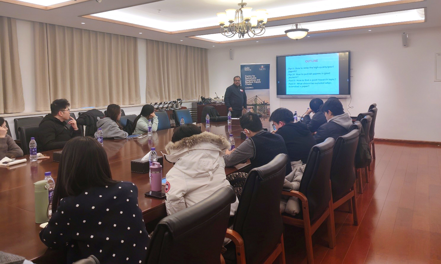 In the exchange session, many participating teachers and students actively asked questions about hot issues such as the length constraints of submitting papers to top journals and corresponding strategies, supply chain optimization under the influence of political factors, the application of AI in paper writing, and how to solve the dilemma that academic output lags behind industry practice. Based on his profound research accumulation and industry insights, Professor Govindan gave in-depth, clear, and detailed responses to each question.